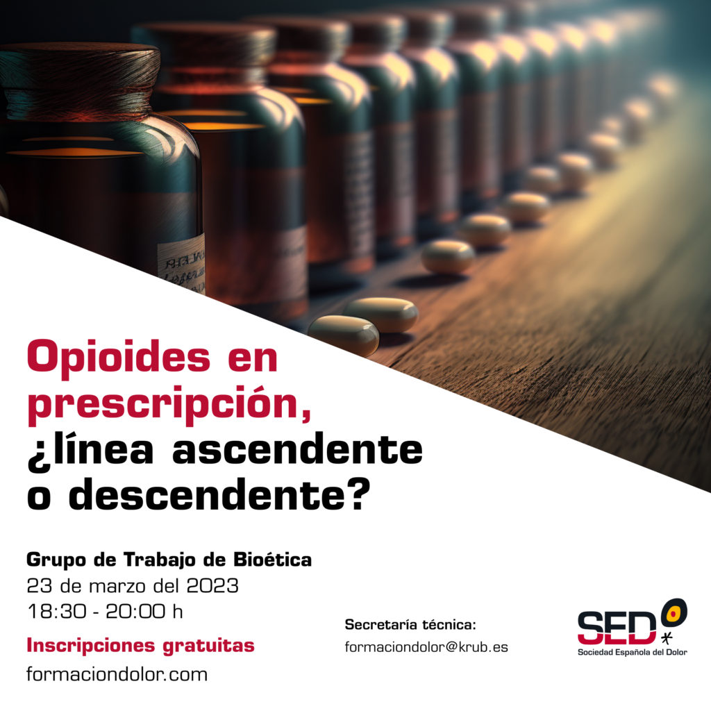 Webinar del Grupo de Trabajo de Bioética de la SED. Opioides en prescripción, ¿línea ascendente o descendente? Próximo 23 de marzo de 18 a 20 horas. Toda la información sobre el webinar e inscripciones en el siguiente enlace.